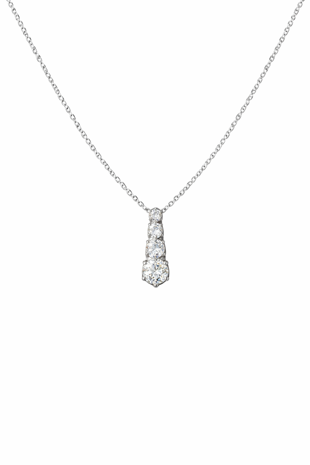 Perfect for both everyday wear and special occasions, the Graduated Moissanite Drop Pendant Necklace is a timeless piece that adds understated luxury and brilliance to any jewellery collection.
