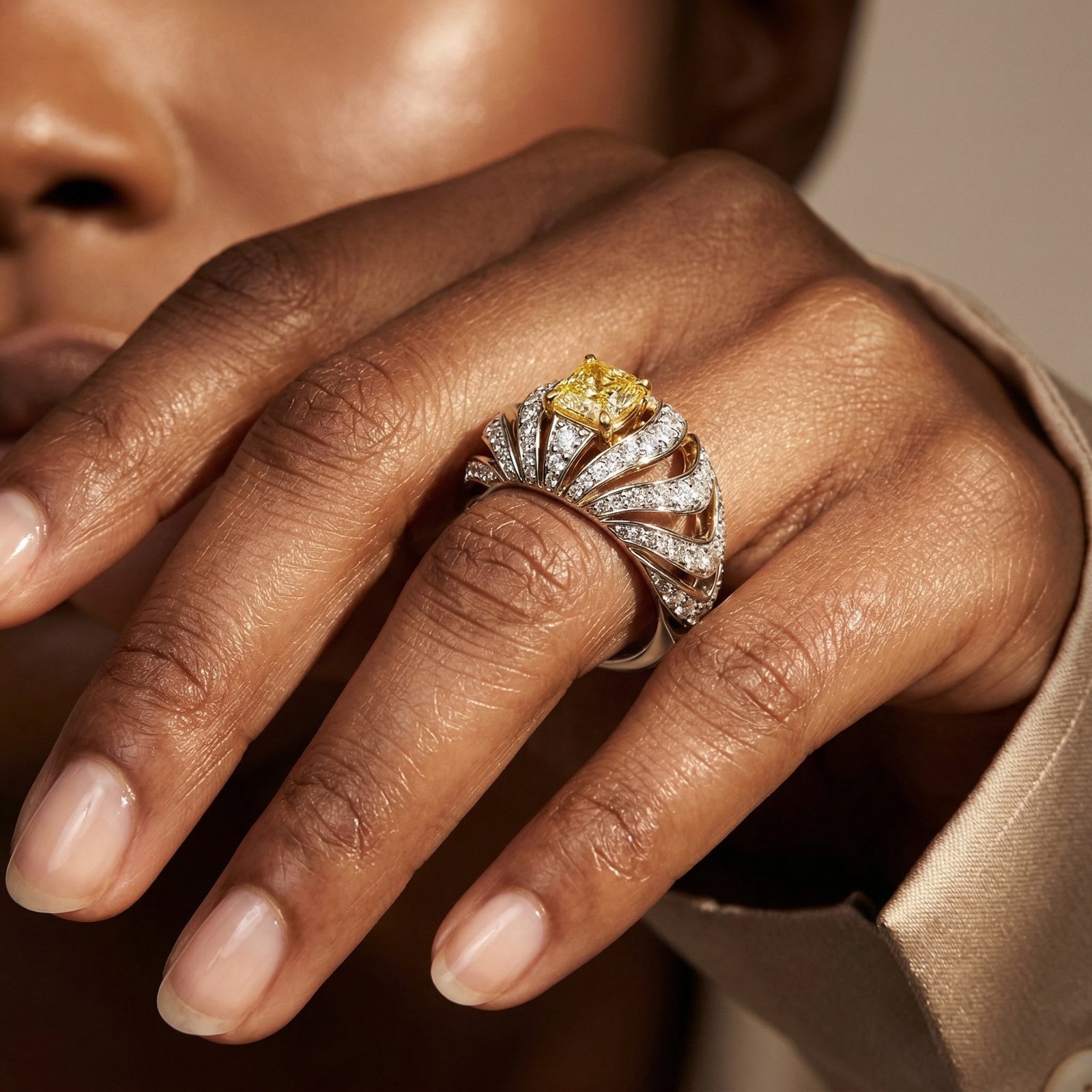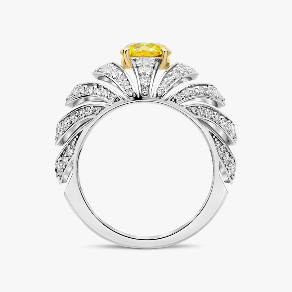 A statement piece that combines contemporary artistry with timeless brilliance, this ring is designed for those who appreciate distinctive jewellery with exceptional sparkle.