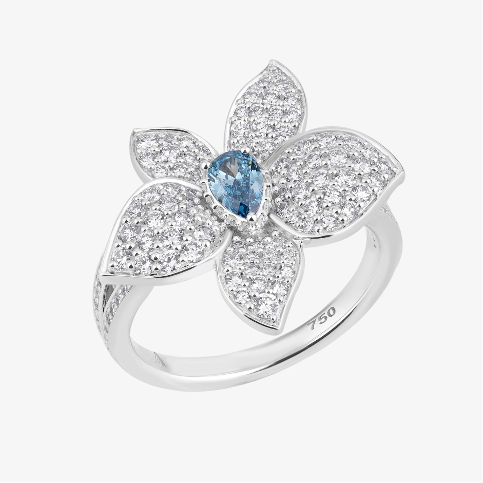 Inspired by the delicate beauty of a blooming flower, this elegant statement ring is crafted in 9K gold and designed to capture light from every angle. At its centre sits a striking 0.5 carat pear-cut diamond, radiating brilliance and drawing the eye with its graceful silhouette.