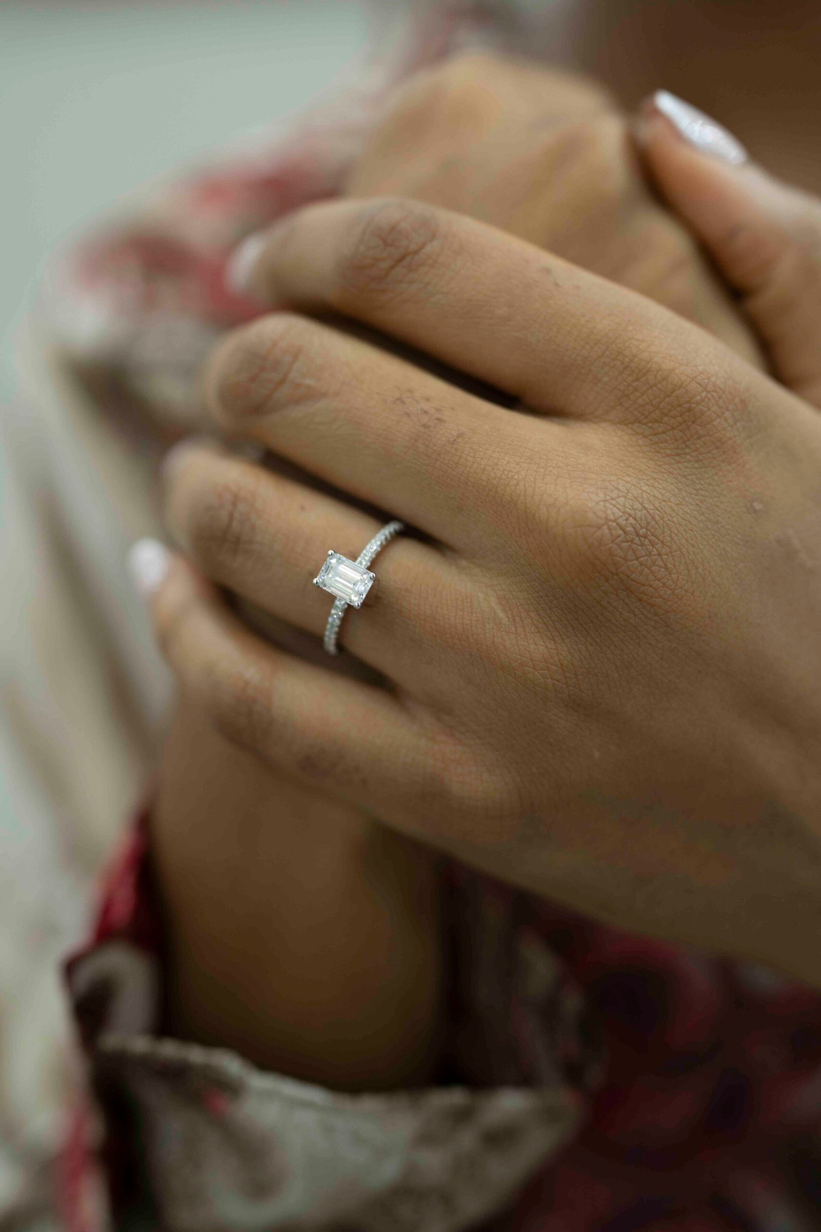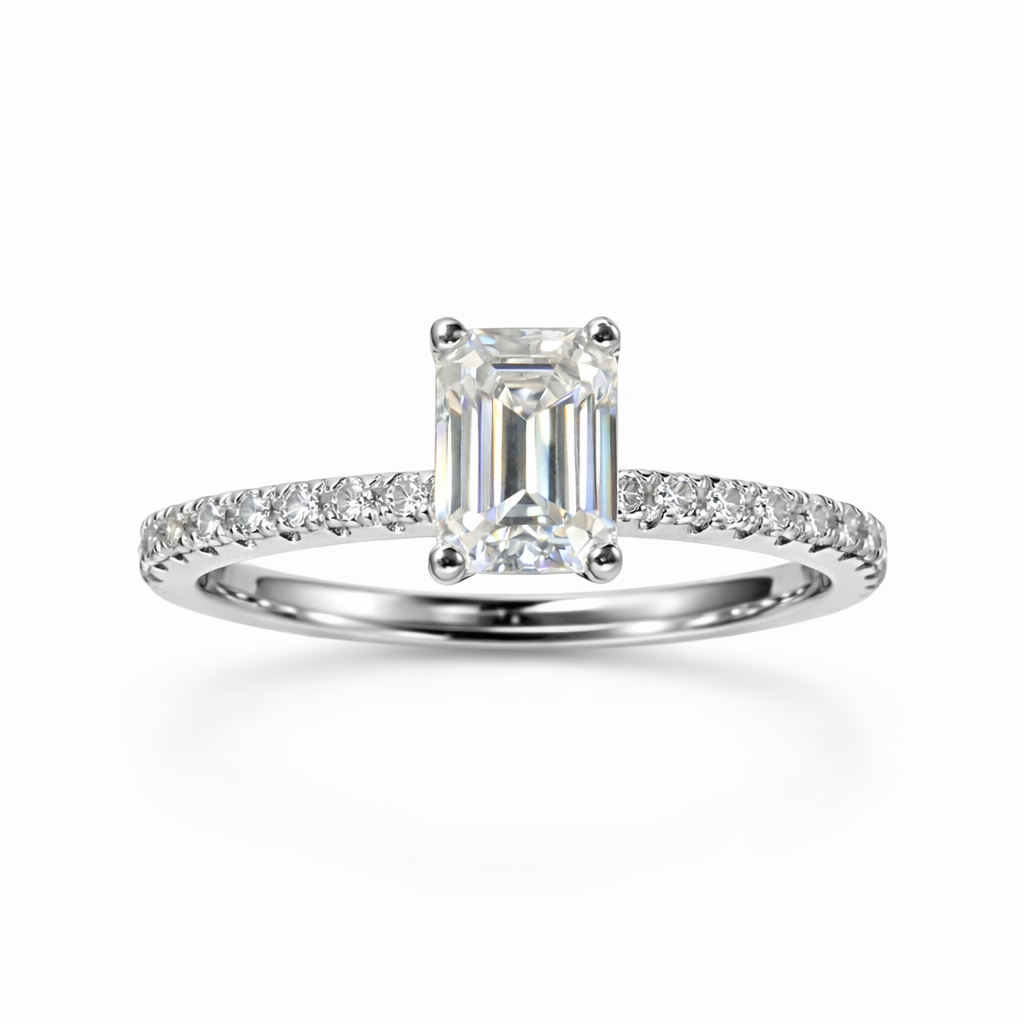 A timeless expression of elegance, this exquisite ring is crafted in rich S925 Silver and crowned with a breathtaking 1ct Emerald-cut moissanite.