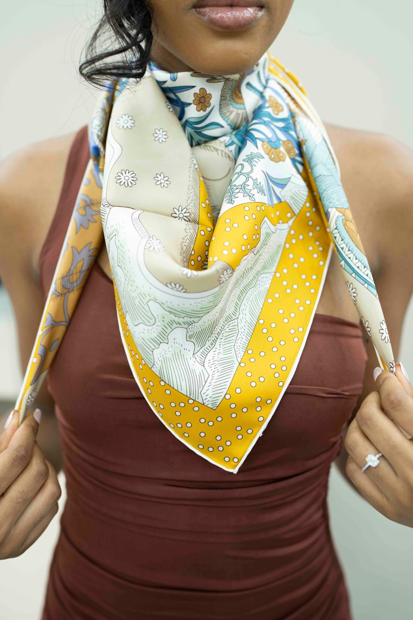 Luxury silk scarf, 100% silk 6A grade, 14mm silk twill. 90cm by 90cm.