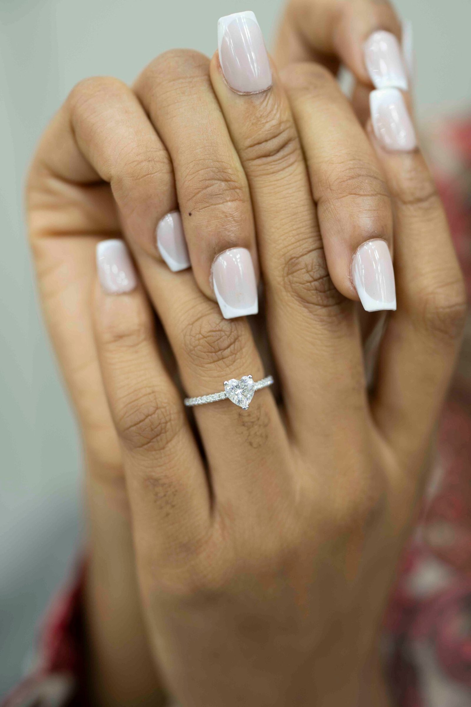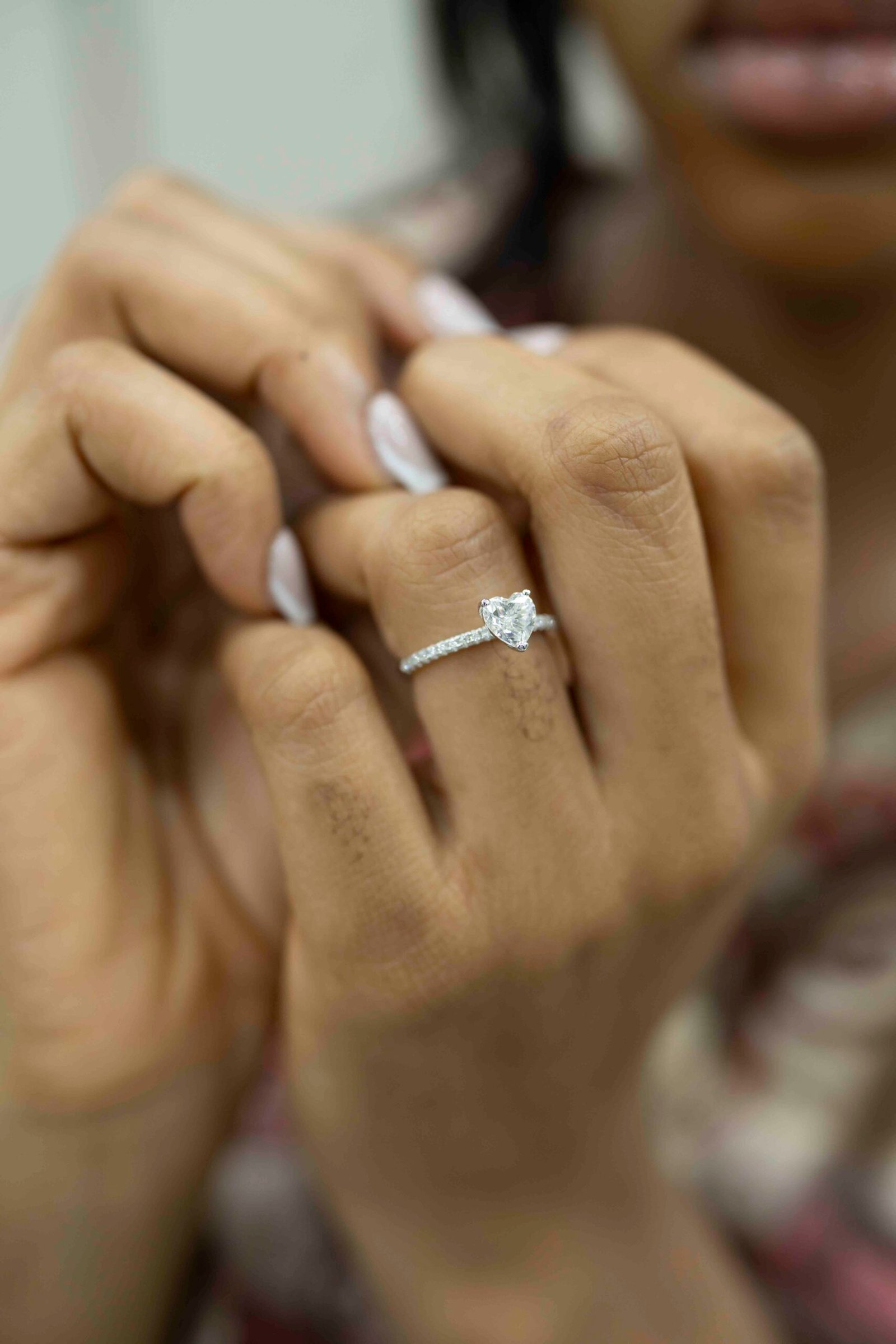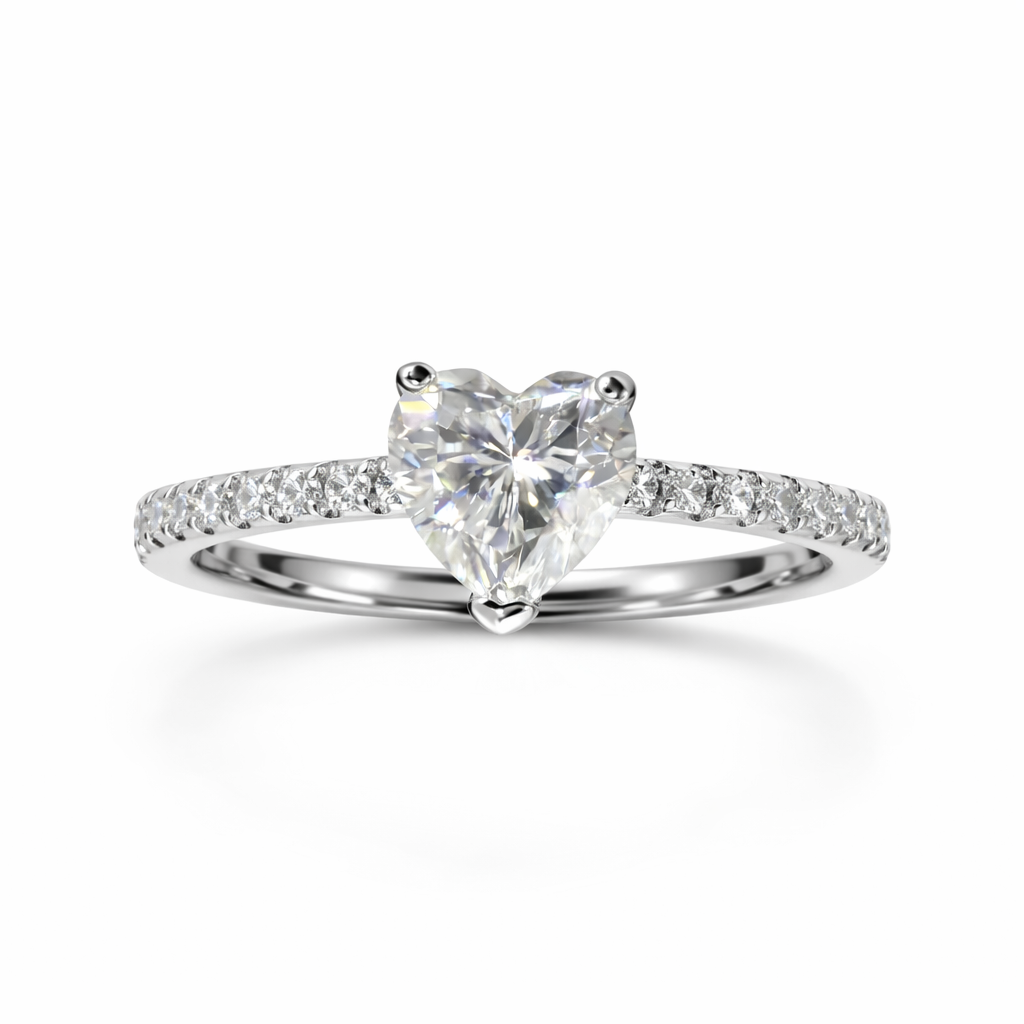 A timeless expression of elegance, this exquisite ring is crafted in rich S925 Silver and crowned with a breathtaking 1ct Heart-cut moissanite.