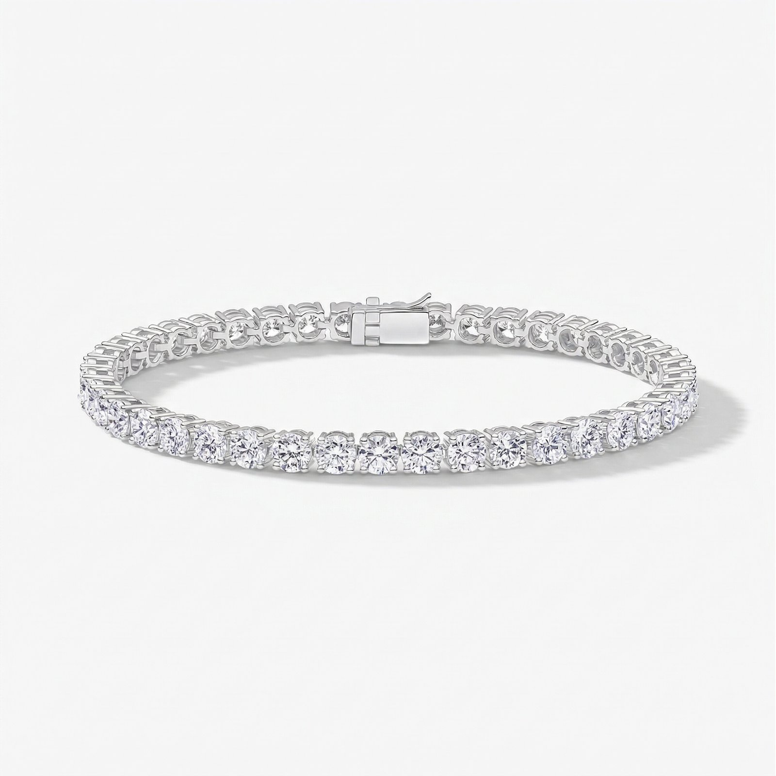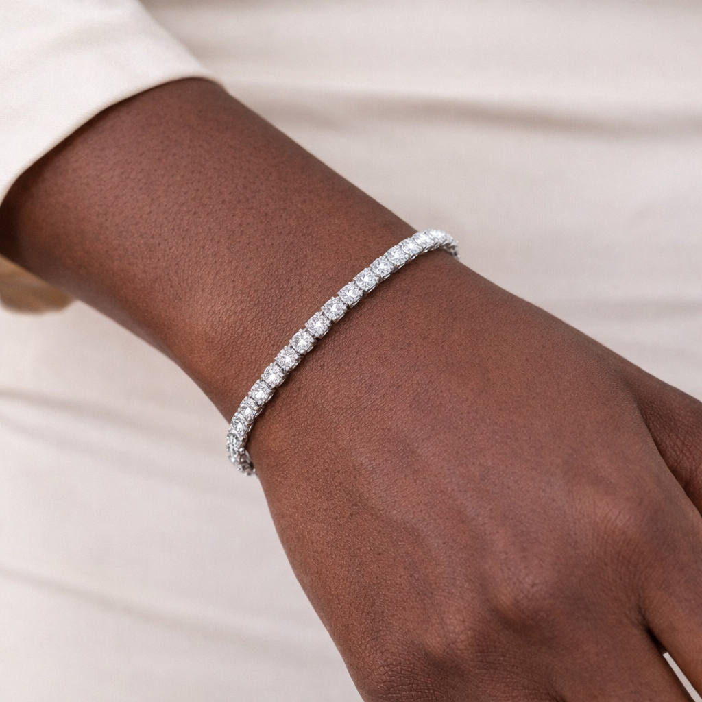 Timeless, radiant, and elegantly refined, this moissanite tennis bracelet is designed to deliver exceptional brilliance. Featuring a continuous row of sparkling round-cut moissanite stones, each gem is carefully set to create a seamless line of light that beautifully wraps around the wrist.