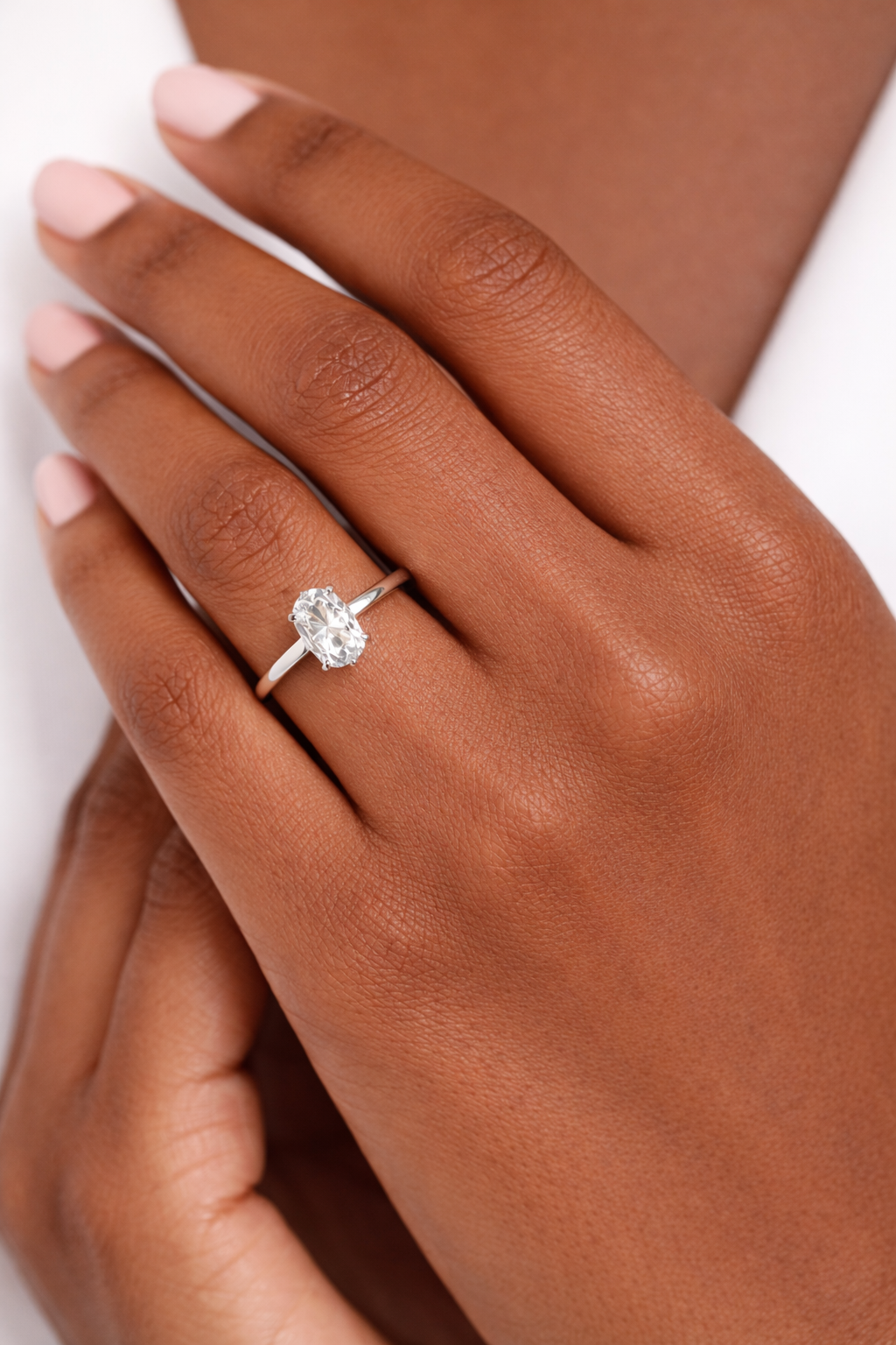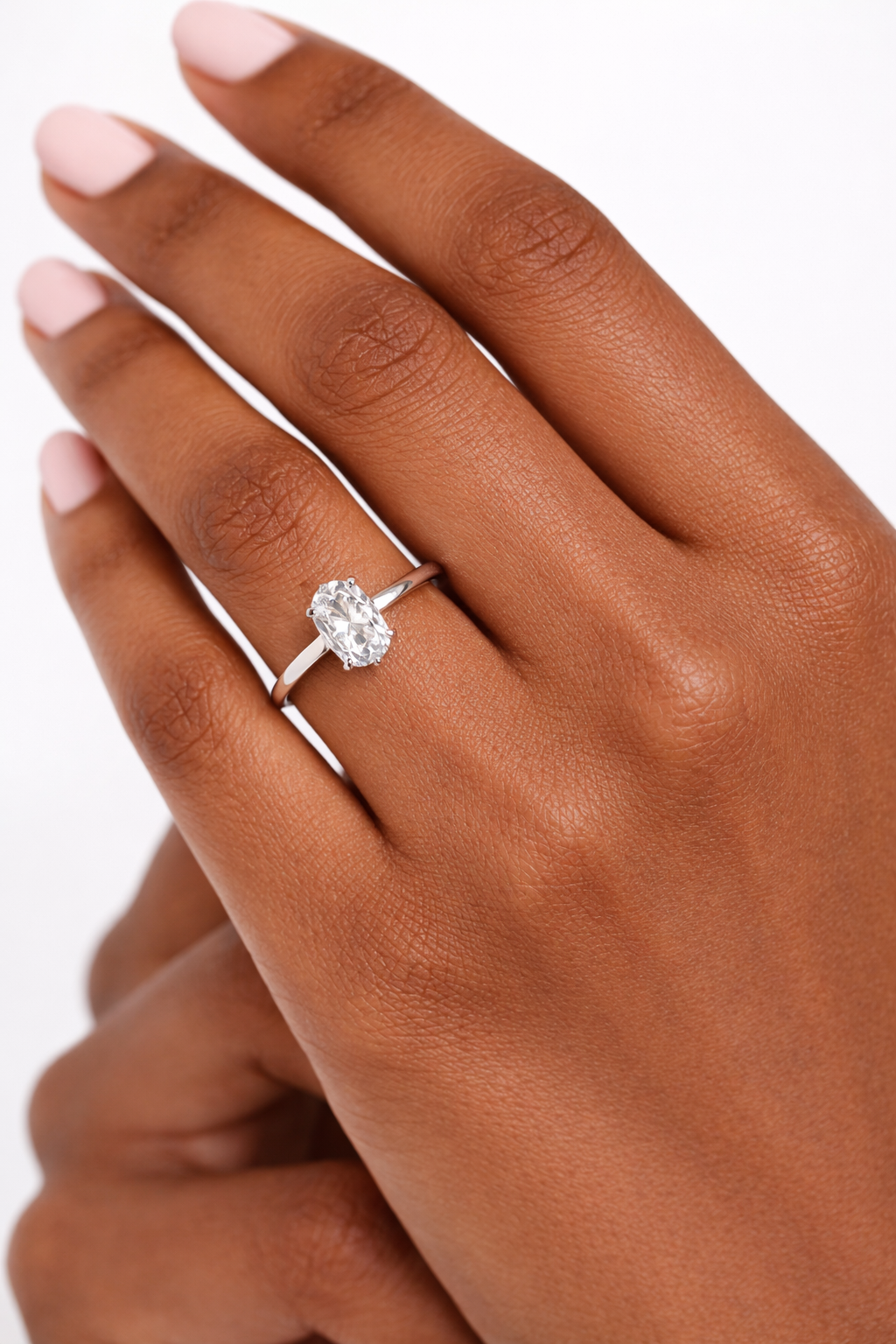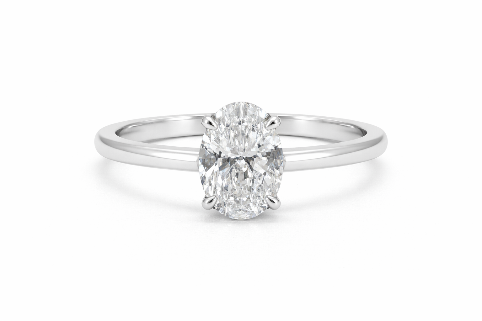 Hand-set Oval Brilliant Classic White Gold Band Lab-grown. Real diamond brilliance. Simple. Iconic. Forever yours.
