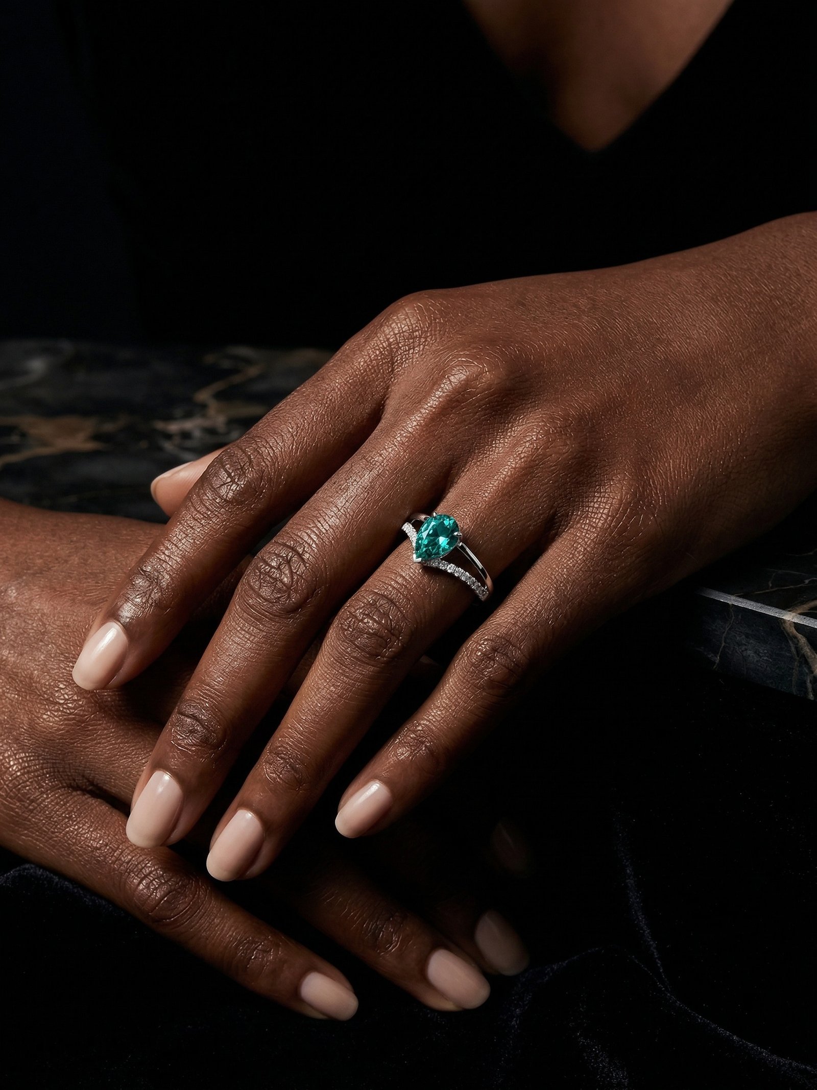The slender diamond-set shank adds a touch of subtle sparkle, highlighting the striking centre stone without overpowering it. Feminine, modern, and effortlessly sophisticated, this ring stands out as a timeless symbol of beauty.