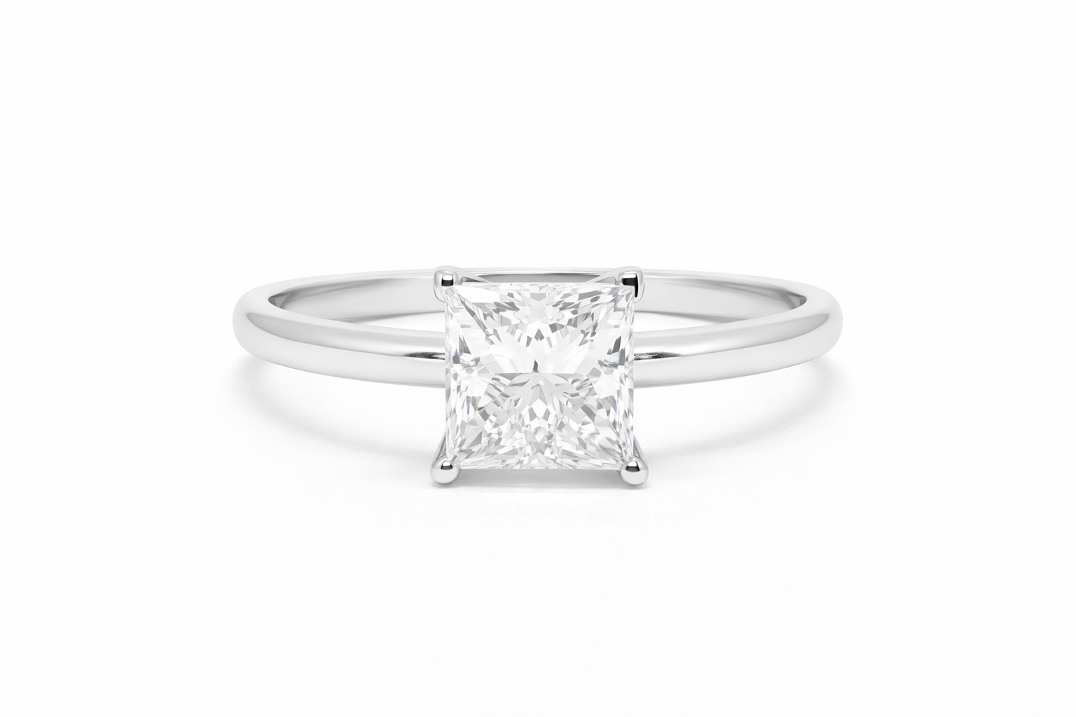 Bold in its simplicity, this elegant solitaire ring is crafted in polished 9K white gold and set with a striking 1.00ct princess-cut diamond. Graded D colour and VVS1 clarity, the centre stone offers exceptional brilliance and purity, with the sharp geometry of the princess cut creating a modern, sophisticated presence.