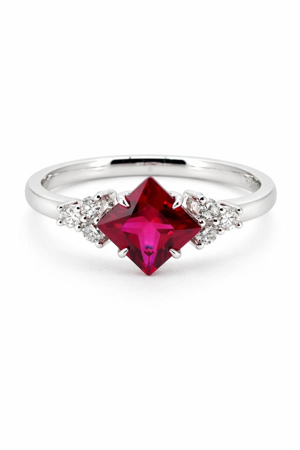 Our Princess-Cut Ruby Ring is a celebration of love in its boldest form — paired with brilliant side diamonds on a sleek white-gold band. Fiery, feminine and endlessly captivating.