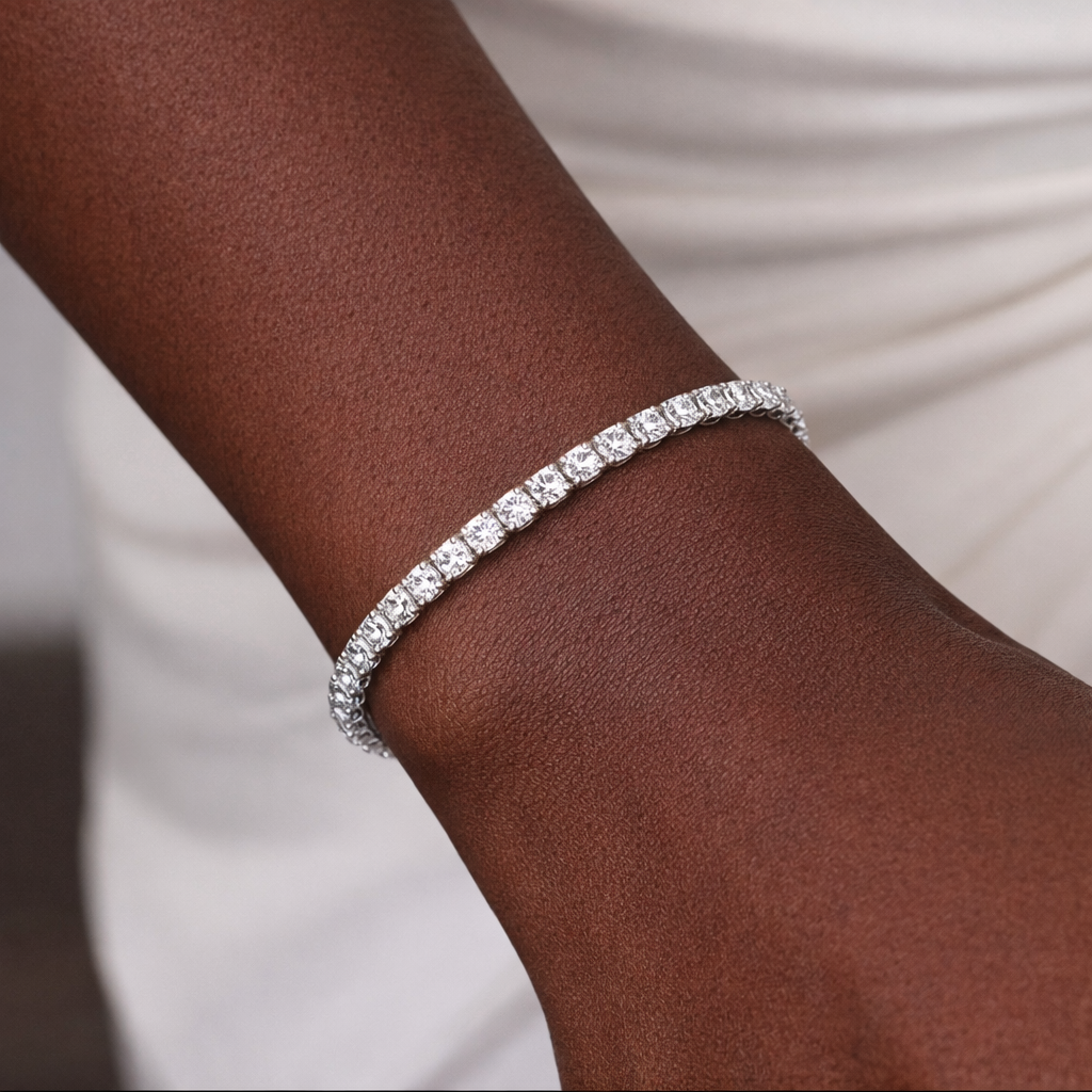 Timeless, elegant, and effortlessly radiant, this diamond tennis bracelet is designed to bring refined brilliance to any occasion. Featuring a continuous line of sparkling round brilliant-cut diamonds, each stone is carefully set to create a seamless flow of light across the wrist.